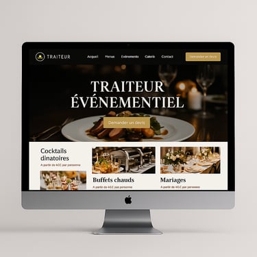 Un site élégant et complet pour présenter vos formules traiteur, vos tarifs, et permettre à vos clients de réserver ou demander un devis en ligne.
